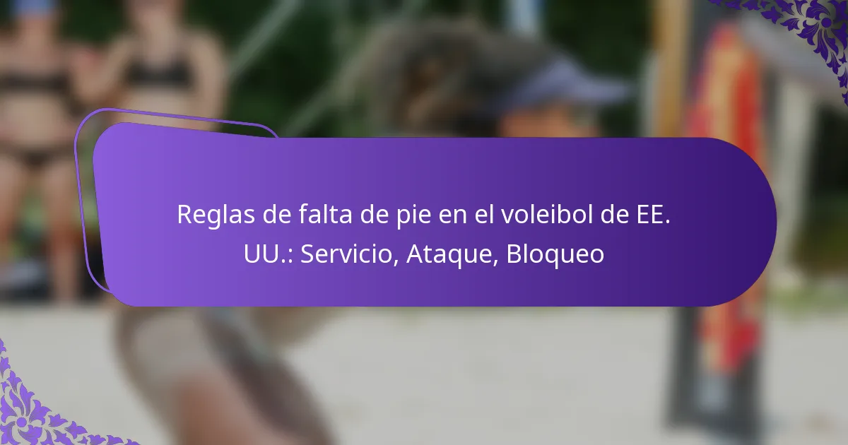 En el voleibol de EE. UU., una falta de pie ocurre cuando un jugador posiciona incorrectamente sus pies durante momentos críticos como el saque, el ataque o el bloqueo. Esta violación puede resultar en penalizaciones que afectan el resultado del juego, haciendo que la colocación adecuada de los pies sea esencial para mantener la legalidad… Read More »